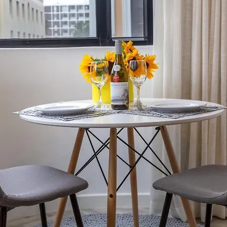 For those who prefer to cook their own meals, Elegant City Pad apartment features self-catering facilities like an electric kettle, a fridge, and kitchenware. The apartment is located an 18-minute drive from Cape Town International airport.